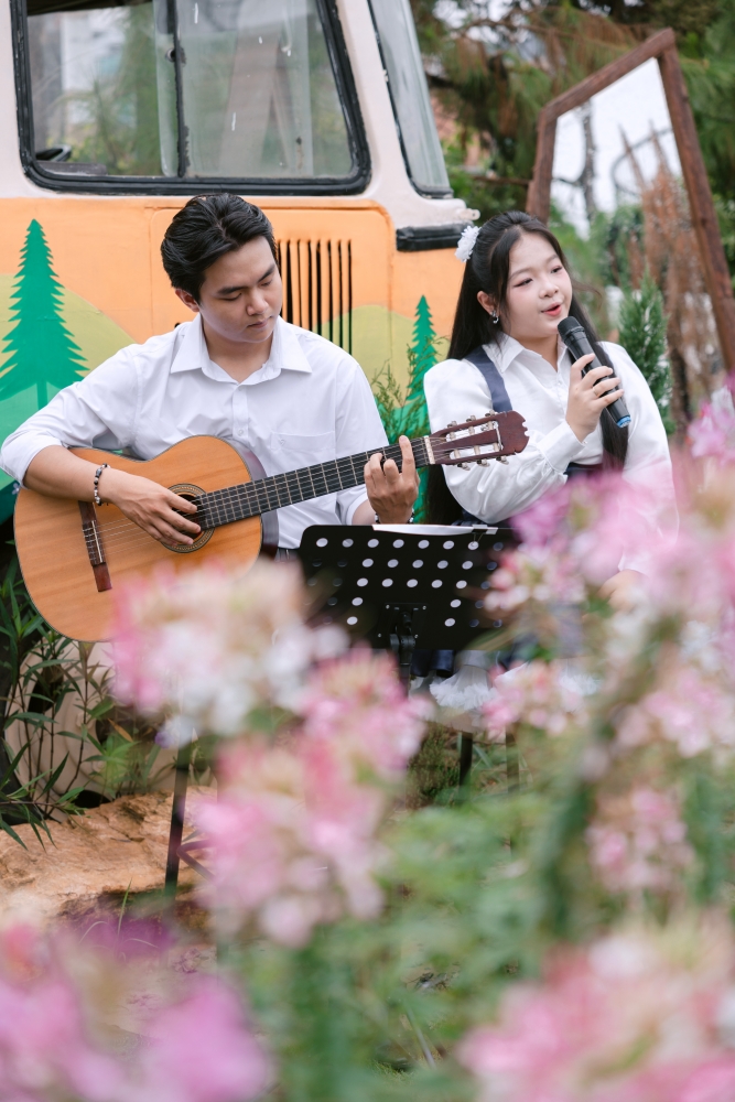 Giữa khung cảnh nên thơ của quán cà phê Thông Sài Gòn – nơi có những rặng thông xanh vươn mình trong gió và những khóm hoa rực rỡ sắc màu – cô bé Nguyễn Song Cát Tường, học sinh lớp 9.5 Trường THCS Chu Văn An (phường Hiệp Thành, TP.HCM), đã có buổi ghi hình thật đặc biệt cho chương trình “Tình ơi! Tôi hát” với MV “Lời Thầy Cô”.