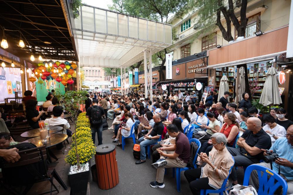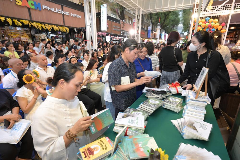 Thiền sư Ajahn Brahm là tác giả của nhiều tựa sách nổi tiếng: Mở cửa trái tim, Buông bỏ buồn buông, Hạnh phúc đến từ sự biến mấy, Tâm từ, Hạnh phúc mỗi ngày… Tuy những tác phẩm này đã được xuất bản ở Việt Nam từ lâu và được đông đảo bạn đọc yêu thích, nhưng đây là lần đầu tiên thiền sư Ajahn Brahm tham gia giao lưu, giới thiệu sách với độc giả Việt. Có lẽ vì vậy mà ngay từ sớm, cả khán đài của buổi giao lưu đã chật ních người, gần như không còn chỗ trống. Tuy phải chen chúc nhau dưới sân khấu của đường sách, nhưng khi vị thiền sư 75 tuổi xuất hiện, mọi người vẫn nhắc nhau nghiêm chỉnh nhường đường đón tiếp thiền sư lên sân khấu.