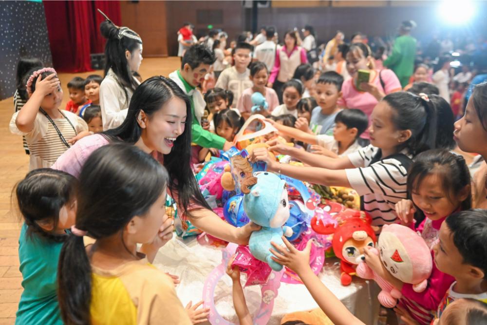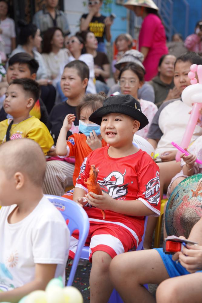 Các nghệ sĩ đã ca hát, giao lưu và tặng quà cho các em, mang lại bầu không khí ấm áp và tràn đầy lạc quan.