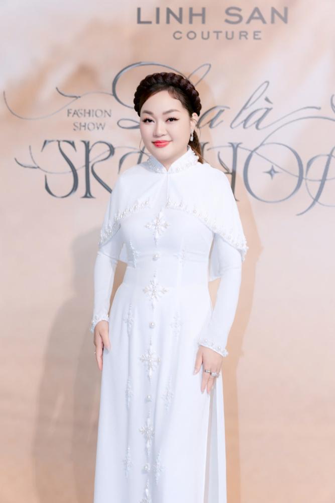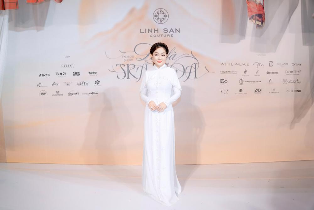 Chiếc áo dài được thiết kế tinh xảo trên nền vải cao cấp, kết hợp kỹ thuật thêu tay truyền thống với đính kết ngọc trai sang trọng, tôn vinh vẻ đẹp thanh thuần và đậm chất Á Đông. Lựa chọn này không chỉ thể hiện tinh thần gìn giữ bản sắc văn hóa dân tộc mà còn cho thấy gu thẩm mỹ tinh tế và định hình hình ảnh cá nhân rõ nét của Hoa hậu Hoàng Thanh Nga.