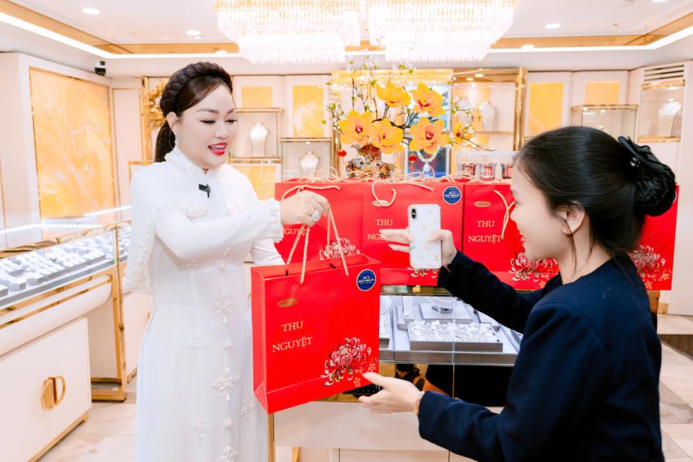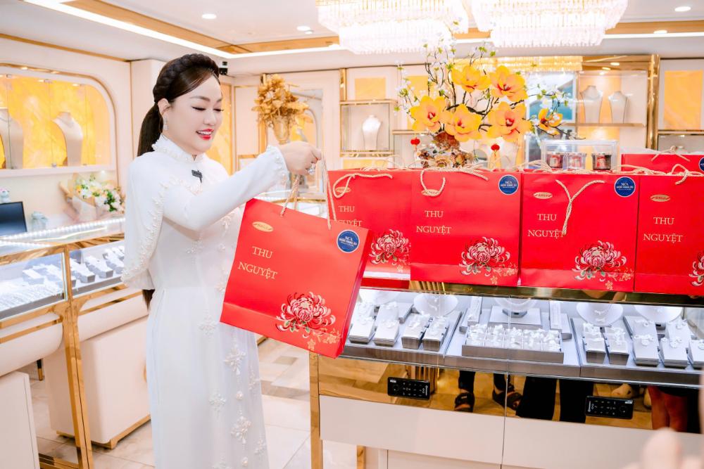 Kết hợp cùng bộ trang sức kim cương từ thương hiệu Ngọc Châu Âu – do chính chị sáng lập và điều hành – tổng thể trang phục toát lên vẻ đẹp đẳng cấp, sang trọng nhưng không phô trương, đúng chất của một nữ doanh nhân hiện đại.