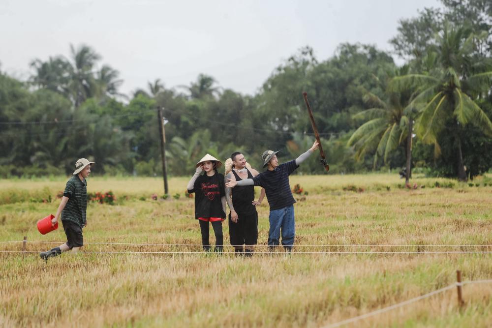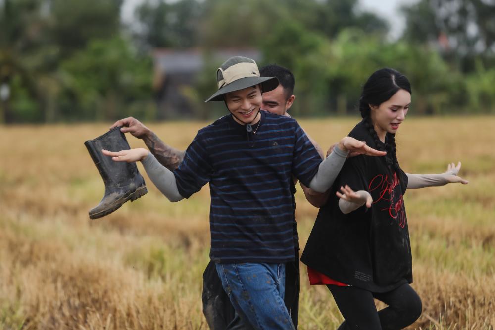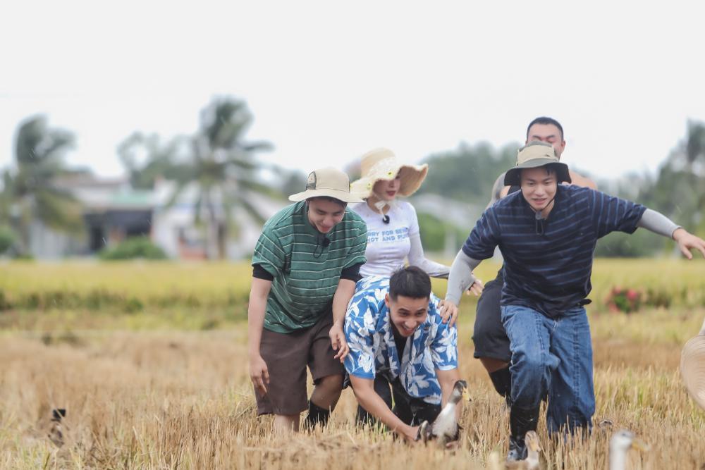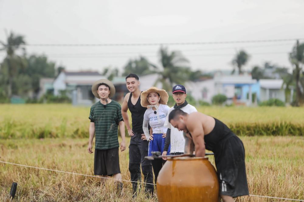 Với đội “bướm đêm”, Khuyến Dương cũng lăn xả hết mình dù liên tục bỏ lại ủng và gặp sự cố tụt quần khiến dàn cast liên tục bật cười. Hai thành viên còn lại là Hương Giang và Tuấn Ngọc cũng phối hợp nhịp nhàng trong chuỗi thử thách liên hoàn kế tiếp khiến các hàng xóm còn lại không khỏi bất ngờ.