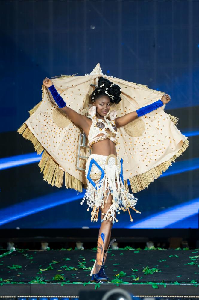 Trong đêm thi đầu tiên ngày 05/12, sân khấu T.E.A Cosmo Carnival by Nam A Bank chào đón 34 đại diện bước vào phần trình diễn Trang phục Diễu hành, gồm: Bangladesh, Brazil, Cambodia, Cameroon, Colombia, Costa Rica, Cuba, DR Congo, Germany, Gibraltar, Guatemala, Haiti, Hong Kong – China, India, Macau – China, Malaysia, Malta, Mexico, Namibia, Netherlands, Nicaragua, Nigeria, Pakistan, Paraguay, Peru, Puerto Rico, Russia, Singapore, Taiwan – China, Tanzania, Thailand, US Virgin Islands, Venezuela, Việt Nam.