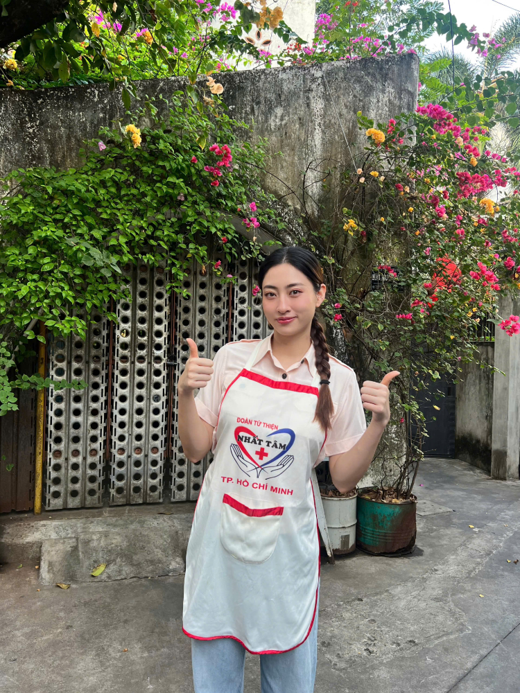 Trong không khí tất bật của những ngày giáp Tết, Hoa hậu Lương Thùy Linh đồng hành cùng Câu lạc bộ từ thiện Nhất Tâm và các tình nguyện viên chuẩn bị bữa ăn thiện nguyện dành cho các em nhỏ đang điều trị ung bướu. Để kịp giờ phát cơm, nàng hậu đã thức dậy từ 5 giờ sáng chuẩn bị và di chuyển đến điểm nấu ăn.