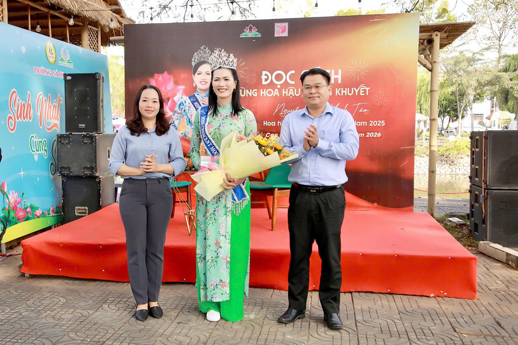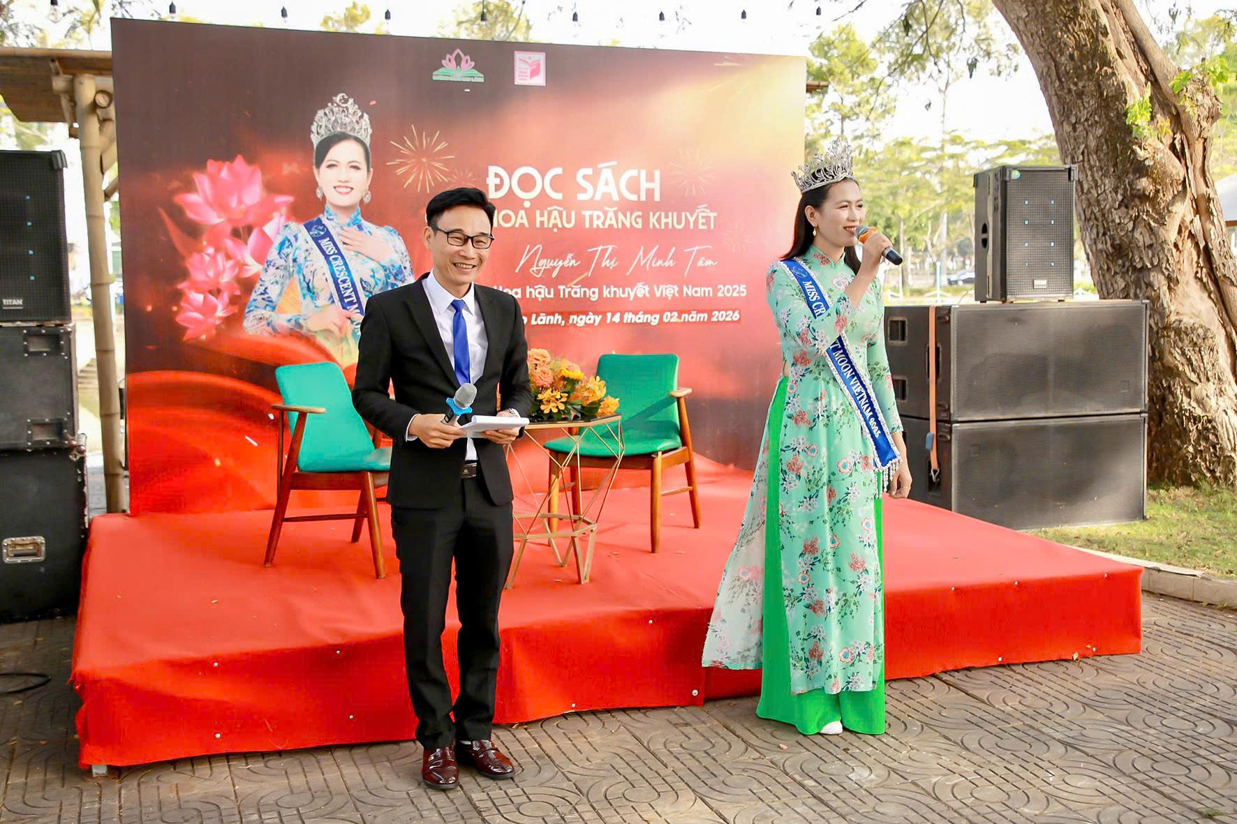 Điểm nhấn đặc biệt của chương trình là sự đồng hành của cô giáo Nguyễn Thị Minh Tâm – Hoa hậu trăng khuyết Việt Nam 2025. Từng đi qua biến cố lớn của cuộc đời vào năm 2009, cô Minh Tâm đã chọn sách làm người bạn đồng hành, làm “đôi chân thứ hai” để nâng đỡ tâm hồn và trí tuệ. Hình ảnh người giáo viên dịu dàng với ý chí kiên cường ấy chính là minh chứng sống động nhất cho thông điệp: