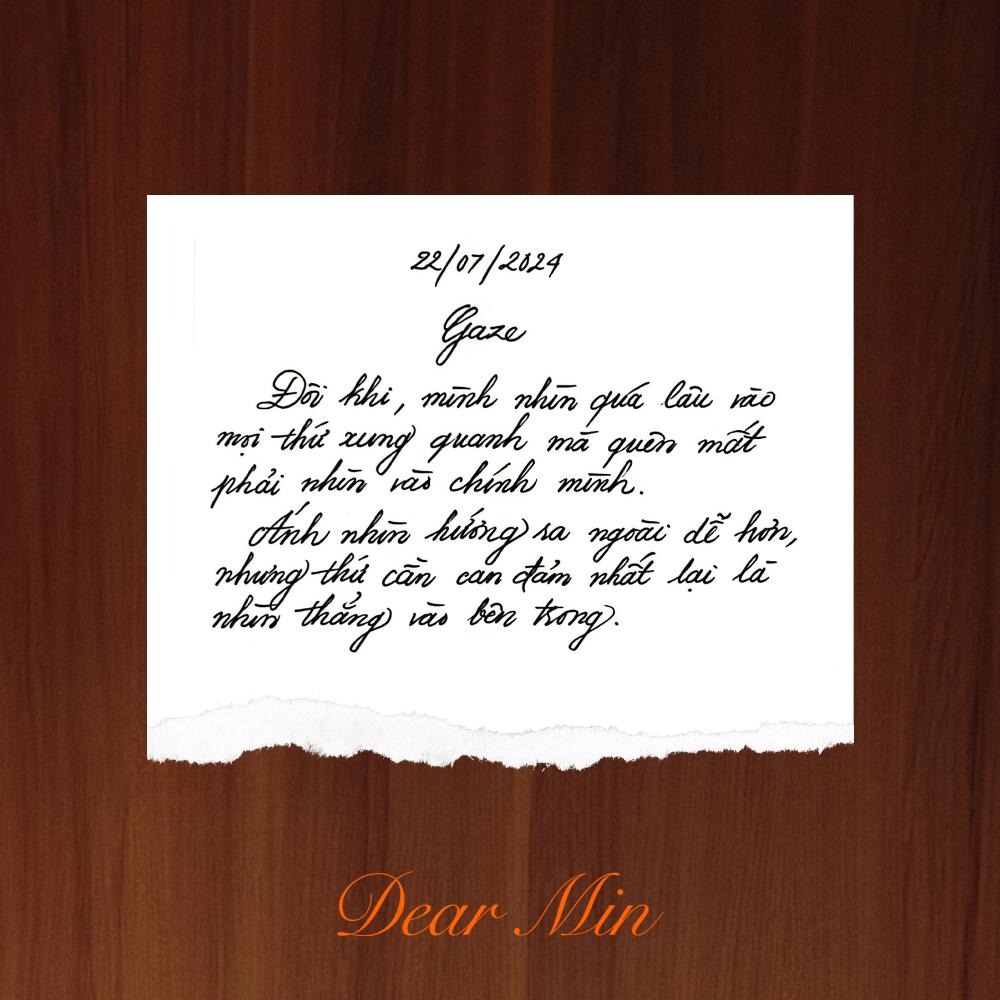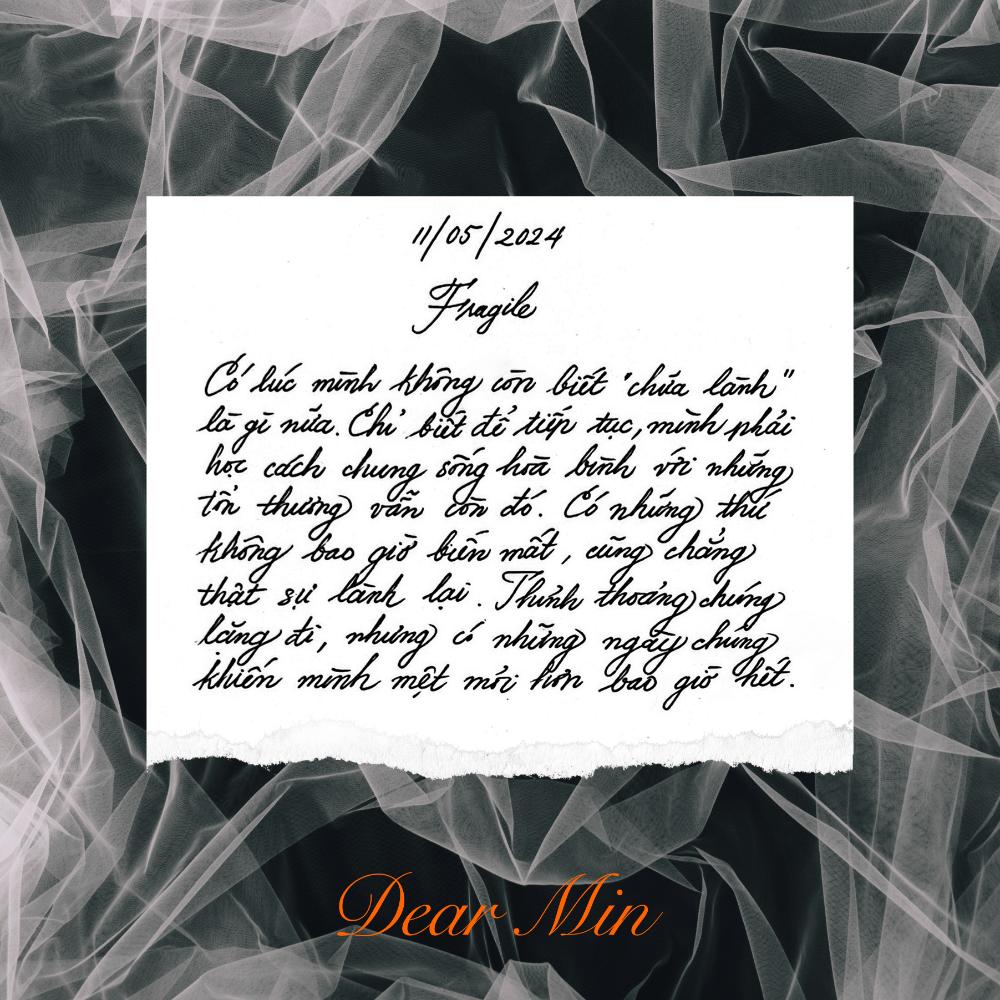 Trước thềm ra mắt album thứ 2, MIN cũng gửi lời nhắn nhủ đến bản thân mình và các khán giả: “Cảm ơn bạn vì đã không bỏ cuộc. Tôi biết bạn đã cố gắng nhiều lắm, chỉ để tiếp tục sống và tin rằng một ngày nào đó mọi thứ sẽ ổn. Ước gì khi ấy bạn biết, bạn vốn dĩ đã xứng đáng được yêu, không cần phải trở nên tốt hơn, không cần phải gồng mình thêm nữa. Rồi sẽ đến lúc bạn hiểu, tất cả những điều từng khiến bạn đau, thật ra đang dẫn bạn đến nơi này, nơi bạn có thể nhìn lại và mỉm cười”.