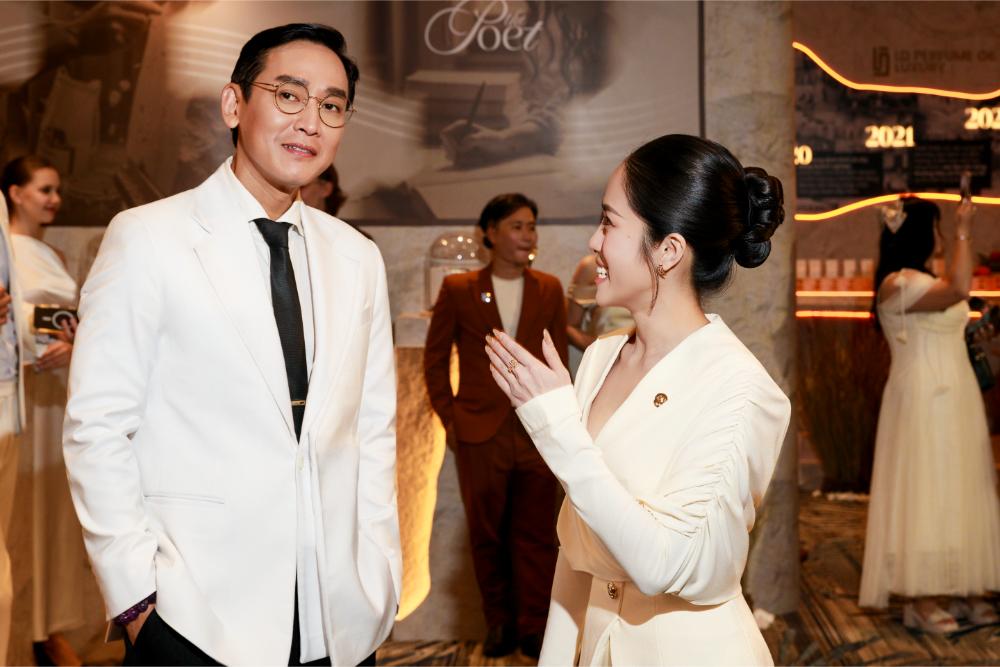 Đặc biệt, năm nghệ sĩ khách mời như những “nguyên mẫu sống” phản chiếu năm cá tính khác nhau kết nối tương đồng với 5 mùi hương độc bản trong BST – Nghệ Thuật & Mùi Hương, giúp thông điệp nghệ thuật của chương trình được truyền tải rõ nét và giàu chiều sâu hơn. Khi chia sẻ cảm nhận về buổi lễ, diễn viên Hứa Vĩ Văn bày tỏ sự vinh dự khi đồng hành cùng một thương hiệu Việt, anh nói: “Tôi cảm thấy rất vui và hãnh diện vì có một local brand nước hoa của Việt Nam. Điều đó cho thấy chúng ta đang phát triển và có tầm nhìn lớn hơn. Tôi rất thích mùi hương khi đến đây, vì với tôi, hương thơm là một điều rất đẹp trong cuộc sống. Chúc cho LD Group sẽ thật thành công với sản phẩm này.”