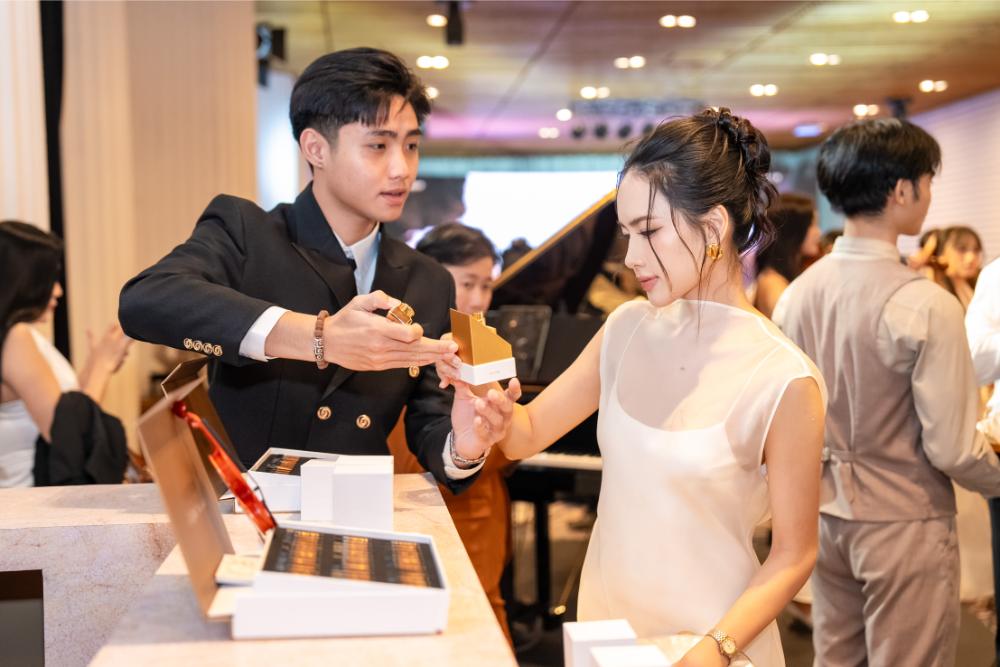 Khu vực thảm đỏ được thiết kế trang nhã, trong khi không gian trải nghiệm mùi hương mở ra một thế giới đa giác quan, nơi mỗi vị khách có thể tự chọn lớp hương phản chiếu cá tính riêng.