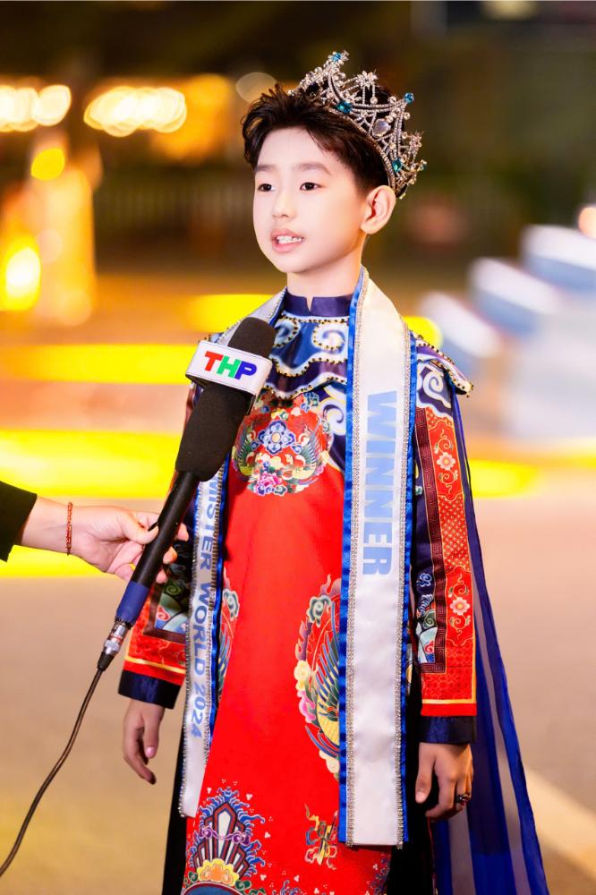 Dù còn rất nhỏ tuổi, Nam vương Nhí Thế giới vẫn làm chủ sân khấu một cách tự nhiên, tạo nên sự kết hợp hài hòa khi sánh bước cùng Miss Charm 2025 Anna Blanco Flores- biểu tượng của vẻ đẹp hiện đại, trí tuệ và tinh thần hội nhập toàn cầu. Màn xuất hiện chung mang đến hình ảnh giao thoa đầy cảm hứng giữa thế hệ nhan sắc nhí Việt Nam và biểu tượng sắc đẹp quốc tế.