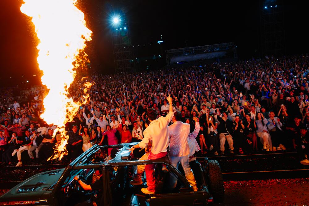 Phần cuối của đêm nhạc được dành cho loạt ca khúc sôi động, nơi những giai điệu quen thuộc được phối lại theo phong cách EDM, tạo nên “đại tiệc âm nhạc” đúng nghĩa. Hàng nghìn khán giả đứng dậy hòa mình vào âm nhạc, biến sân khấu Global City thành một không gian lễ hội rực rỡ ánh sáng và năng lượng.