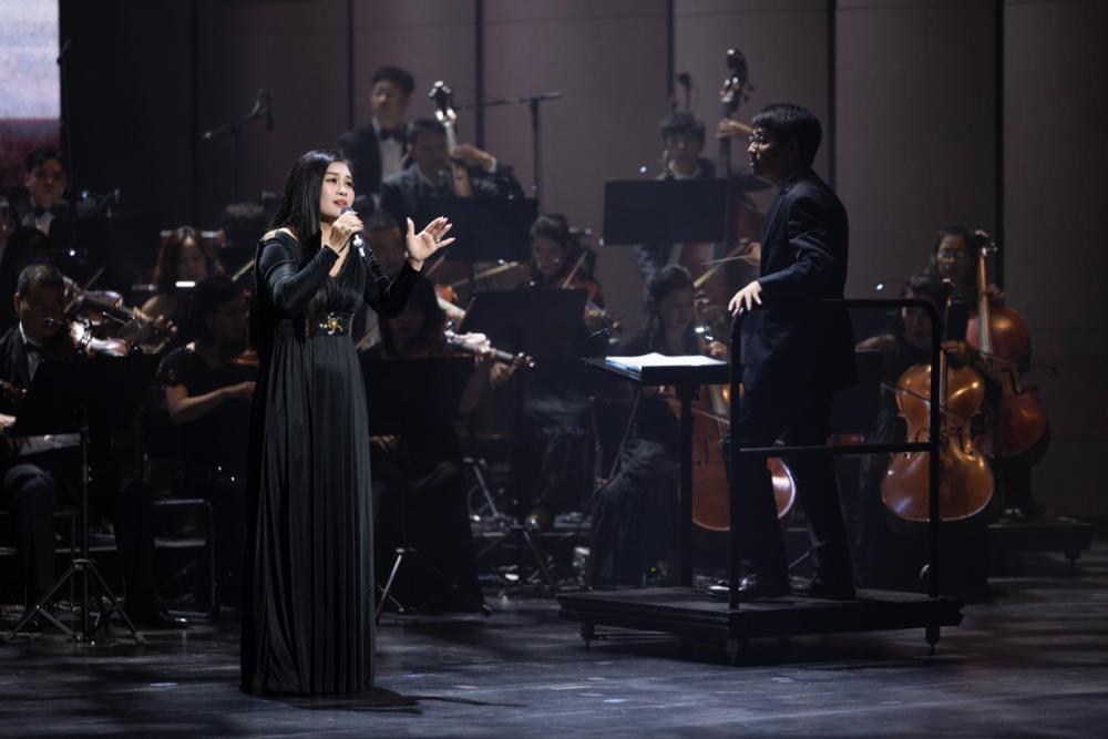 Phần mở đầu là bản cello “Bài hát Thu về” do Bùi Hà Miên trình diễn cùng dàn nhạc giao hưởng – khúc dạo nhẹ nhàng dẫn khán giả vào thế giới của Dương Thụ. Tiếp nối, Hồng Nhung mang đến “Họa mi hót trong mưa” – bản phối mới của Hoài Sa, vừa quen thuộc vừa đầy tinh tế, khiến cả khán phòng lặng đi trong những thanh âm mưa rơi của ký ức.