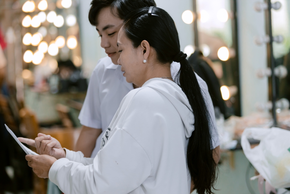 Nhiều người nói, thấy hai mẹ con em trong hậu trường mà không khỏi xúc động. Bởi vì trước giờ diễn, mẹ là người makeup, làm tóc, chỉnh từng nếp áo, dặn em từng lời thoại, từng nụ cười. Có khi trời nắng chang chang hay mưa dầm ướt áo, mẹ vẫn kiên nhẫn đưa em đi diễn – từ Đồng Nai, Bình Dương đến Củ Chi – chỉ để em được sống trọn trong niềm vui của mình.