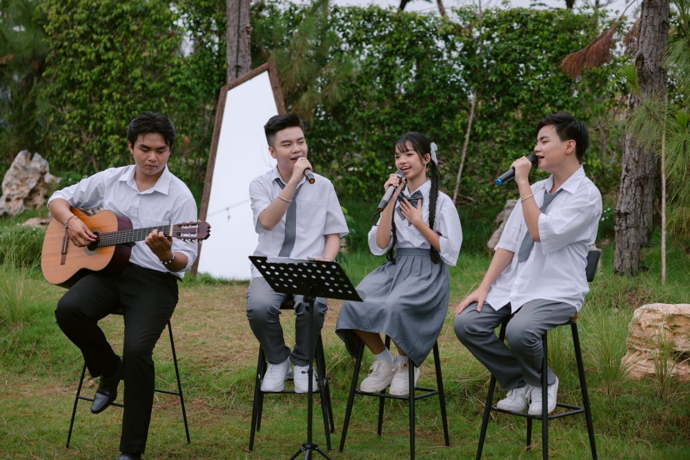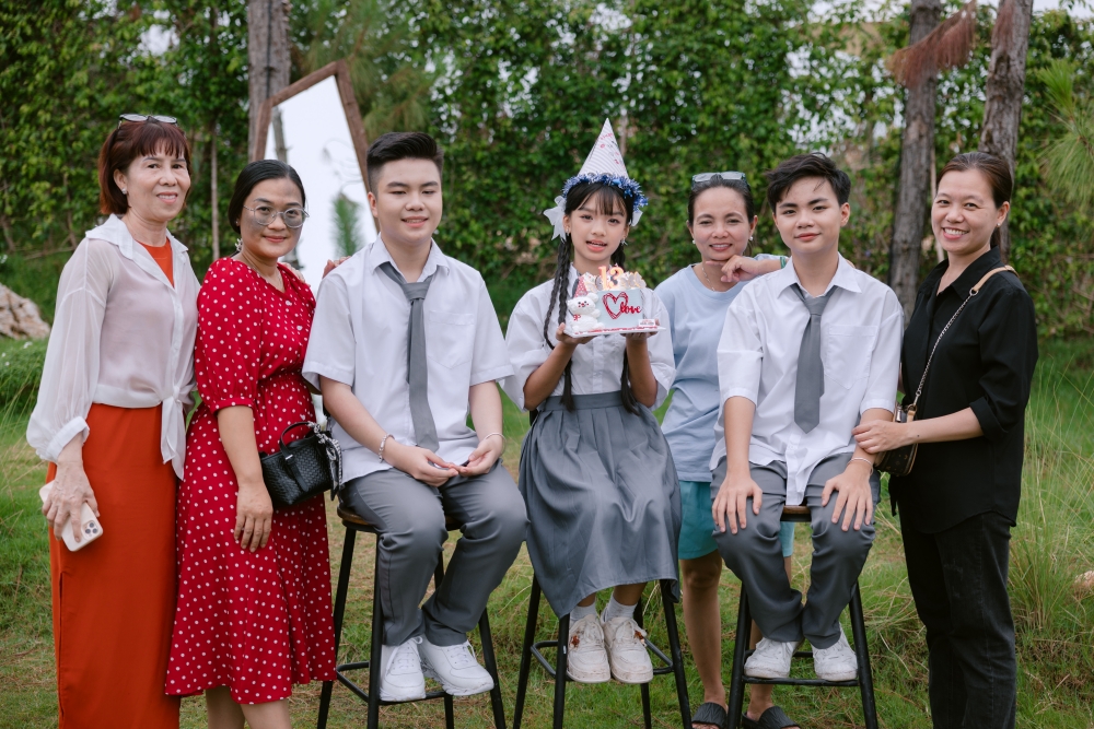 Và có lẽ, điều khiến buổi quay càng đáng nhớ hơn là sinh nhật bất ngờ mà mẹ dành tặng cho Gia Như. Không hề hay biết trước, cô bé đã vô cùng xúc động khi cả ba mẹ, các phụ huynh, các bạn, đạo diễn, photo… cùng hát chúc mừng sinh nhật giữa bối cảnh nên thơ. “Em không biết gì luôn, chỉ nghe cô đạo diễn nói cần một tấm hình chụp chung của em với hai bạn nên tụi em vào vị trí ngồi, rồi bất ngờ khi thấy mẹ đem bánh sinh nhật ra. Mọi người cùng vỗ tay hát chúc mừng sinh nhật em. Em vui và cảm động lắm. Em cám ơn mọi người rất nhiều!” – Gia Như kể, ánh mắt lấp lánh niềm hạnh phúc. Sự ấm áp của khoảnh khắc đó, với sự góp mặt của phụ huynh, bạn bè và cả ekip, đã để lại một kỷ niệm khó phai trong tim cô bé.